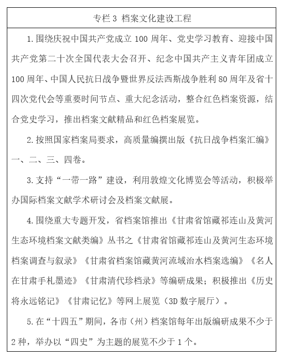 ????日前,省委辦公廳、省政府辦公廳印發(fā)《“十四五”甘肅省檔案事業(yè)發(fā)展規(guī)劃》,全文如下。