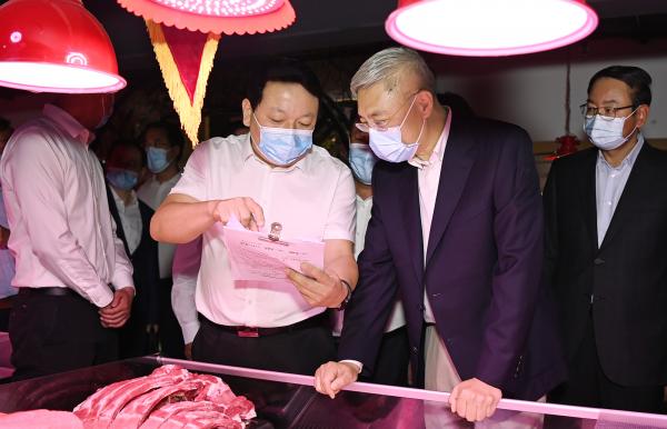 城關(guān)區(qū)五泉菜市場(chǎng)處處洋溢著節(jié)日的氣氛。尹弘走進(jìn)市場(chǎng),現(xiàn)場(chǎng)察看疫情防控和食品安全檢測(cè)、商品質(zhì)量?jī)r(jià)格等情況,同商戶、買菜市民和市場(chǎng)管理者親切交流,詳細(xì)了解市場(chǎng)供應(yīng)、貨源儲(chǔ)備、經(jīng)營(yíng)管理、價(jià)格穩(wěn)定等情況。他強(qiáng)調(diào),要強(qiáng)化統(tǒng)籌協(xié)調(diào),多渠道組織貨源,全方位優(yōu)化服務(wù),著力豐富商品供應(yīng)種類,確保節(jié)日期間老百姓“米袋子”“菜籃子”“果盤子”物豐價(jià)穩(wěn)。要加強(qiáng)食品安全和產(chǎn)品質(zhì)量監(jiān)管、價(jià)格監(jiān)管,嚴(yán)格落實(shí)食品安全主體責(zé)任,加強(qiáng)食品特別是進(jìn)口冷鏈?zhǔn)称烦B(tài)化檢測(cè)檢疫,嚴(yán)厲查處各種損害消費(fèi)者權(quán)益的食品問題,守護(hù)好人民群眾“舌尖上的安全”。要持續(xù)抓好常態(tài)化疫情防控,毫不放松抓好“外防輸入、內(nèi)防反彈”和“人物同防”各項(xiàng)工作,落實(shí)公共場(chǎng)所戴口罩、亮碼測(cè)溫、通風(fēng)消毒等健康管理措施,切實(shí)保障人民群眾身體健康和生命安全。