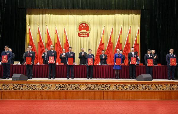 與會(huì)領(lǐng)導(dǎo)為省科技功臣獎(jiǎng)獲得者和2020年度省科學(xué)技術(shù)獎(jiǎng)、專利獎(jiǎng)獲得者代表頒獎(jiǎng)。尹弘代表省委、省政府向受表彰集體和個(gè)人表示熱烈祝賀,向全省科技工作者致以崇高敬意。