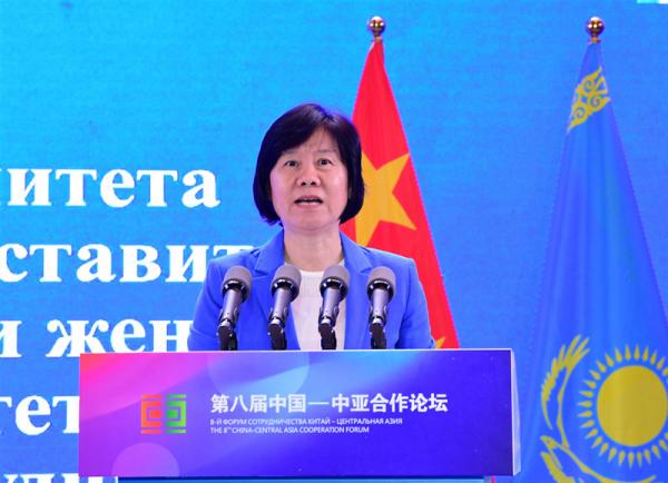 全國(guó)人大常委會(huì)副委員長(zhǎng)、全國(guó)婦聯(lián)主席、上海合作組織睦鄰友好合作委員會(huì)主席沈躍躍出席論壇并致辭,她指出,婦女是推動(dòng)社會(huì)發(fā)展和進(jìn)步的重要力量。中國(guó)共產(chǎn)黨第十八次代表大會(huì)以來(lái),中國(guó)婦女事業(yè)取得了歷史性成就,今天的中國(guó)婦女主人翁地位更加彰顯,半邊天力量充分釋放,婦女權(quán)益保障水平明顯提升,廣大婦女獲得感幸福感安全感與日俱增,正在意氣風(fēng)發(fā)向著全面建成社會(huì)主義現(xiàn)代化強(qiáng)國(guó)的第二個(gè)百年奮斗目標(biāo)邁進(jìn)。中國(guó)和中亞國(guó)家是命運(yùn)與共的好伙伴、好朋友,“一帶一路”建設(shè)給我們帶來(lái)了共同的機(jī)遇。我們要在習(xí)近平主席和各國(guó)領(lǐng)導(dǎo)人的戰(zhàn)略指引下,齊心協(xié)力、共同奮進(jìn),為推動(dòng)構(gòu)建人類命運(yùn)共同體、建設(shè)一個(gè)讓婦女免于歧視的世界而共同努力。要繼續(xù)團(tuán)結(jié)抗疫,統(tǒng)籌常態(tài)化疫情防控和經(jīng)濟(jì)復(fù)蘇,幫助婦女?dāng)[脫疫情影響,共同守護(hù)地區(qū)人民生命健康。要堅(jiān)持互利共贏,加強(qiáng)政策對(duì)話、經(jīng)驗(yàn)分享和區(qū)域合作,促進(jìn)婦女在參與恢復(fù)經(jīng)濟(jì)、社會(huì)變革中實(shí)現(xiàn)更好發(fā)展。要促進(jìn)民心相通,拓寬各國(guó)傳承友好、深化互信渠道,擴(kuò)大交流交往、文明互鑒,加強(qiáng)民間友好合作,為構(gòu)建中國(guó)中亞命運(yùn)共同體貢獻(xiàn)婦女力量。