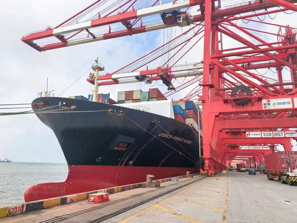 △2025年10月15日,上海洋山深水港,首批來自秘魯錢凱港的進(jìn)博會(huì)展品順利卸貨。