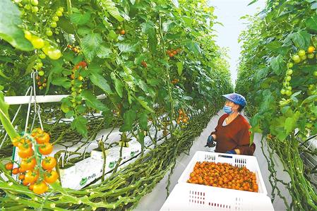在民樂縣的張掖海升現(xiàn)代農(nóng)業(yè)有限公司,建設(shè)的亞洲單體規(guī)模最大、種植技術(shù)最先進(jìn)、節(jié)能環(huán)保程度最高的現(xiàn)代智能玻璃溫室,溫室內(nèi)光、溫、水、氣等環(huán)境調(diào)控全部實(shí)現(xiàn)智能化,技術(shù)操作實(shí)現(xiàn)了自動(dòng)化,節(jié)水率達(dá)90%以上,年產(chǎn)彩椒、串番茄等果蔬達(dá)到5600噸,全部銷往國內(nèi)高端市場,農(nóng)業(yè)畝產(chǎn)均值達(dá)到了創(chuàng)紀(jì)錄的百萬元,相當(dāng)于全縣170萬畝農(nóng)業(yè)用地全部種植小麥的經(jīng)濟(jì)收益總和,顛覆了傳統(tǒng)觀念對農(nóng)業(yè)的認(rèn)知。
