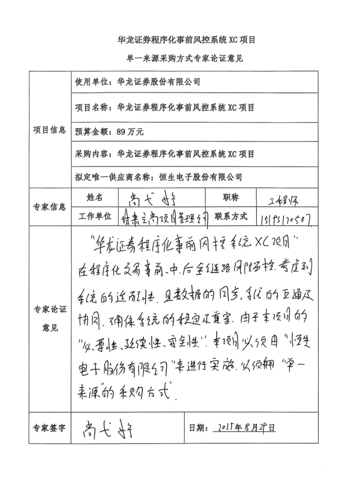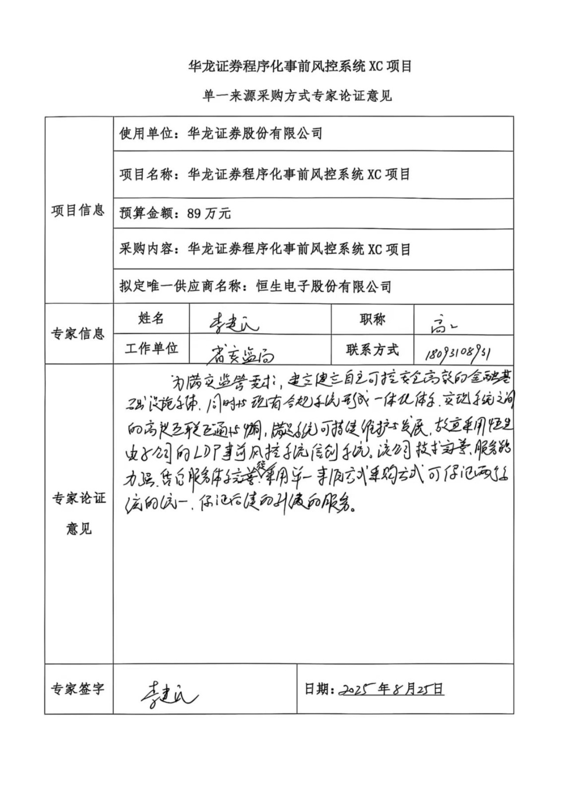 根據(jù)以上特點,我公司擬進行單一來源方式采購恒生電子股份有限公司下的LDP事前風(fēng)控系統(tǒng)信創(chuàng)系統(tǒng),以進一步完善、提升華龍證券合規(guī)管理體系的建設(shè)。
