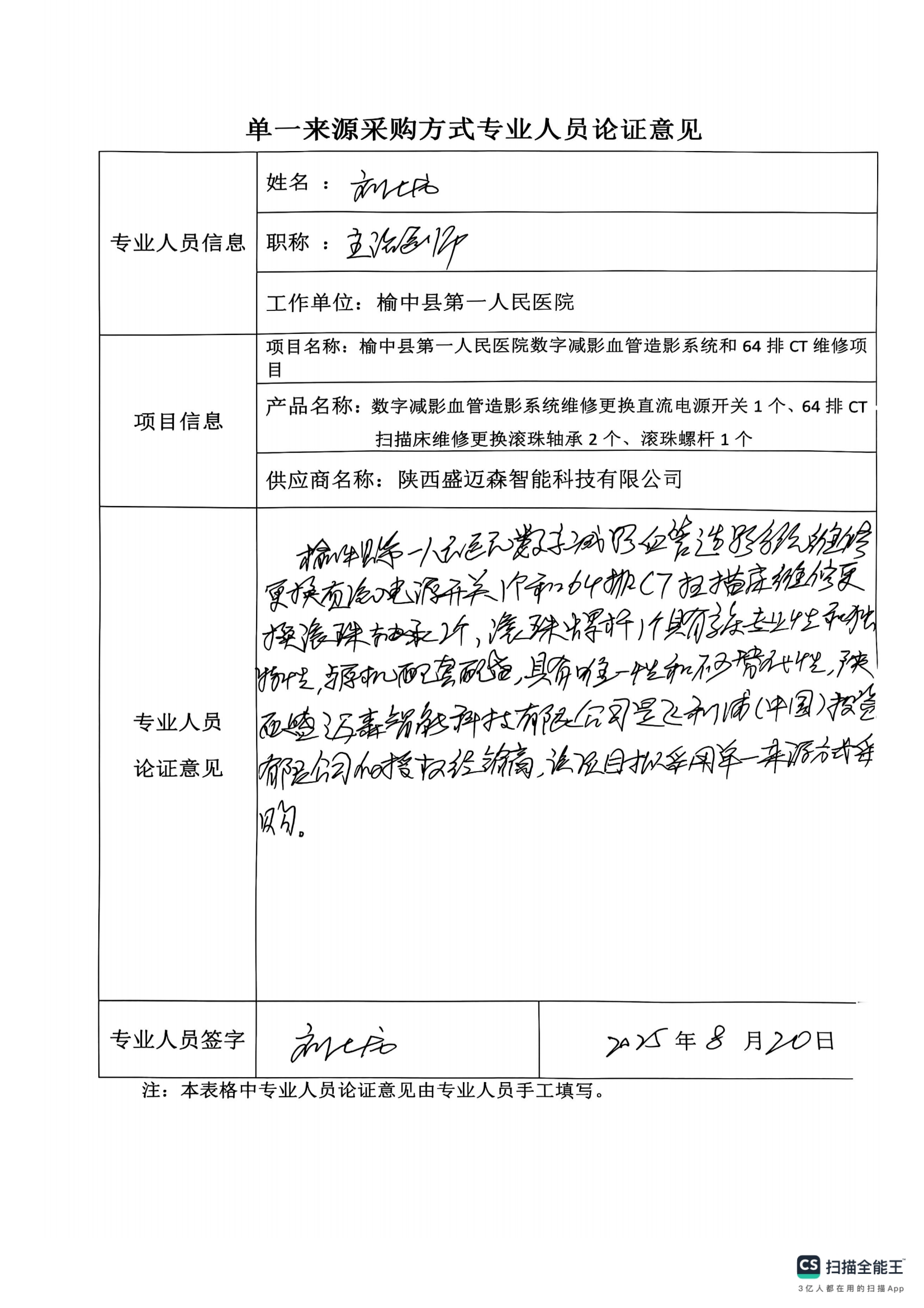 榆中縣第一人民醫(yī)院數(shù)字減影血管造影系統(tǒng)和64排CT維修采購項目院內(nèi)單一來源公示