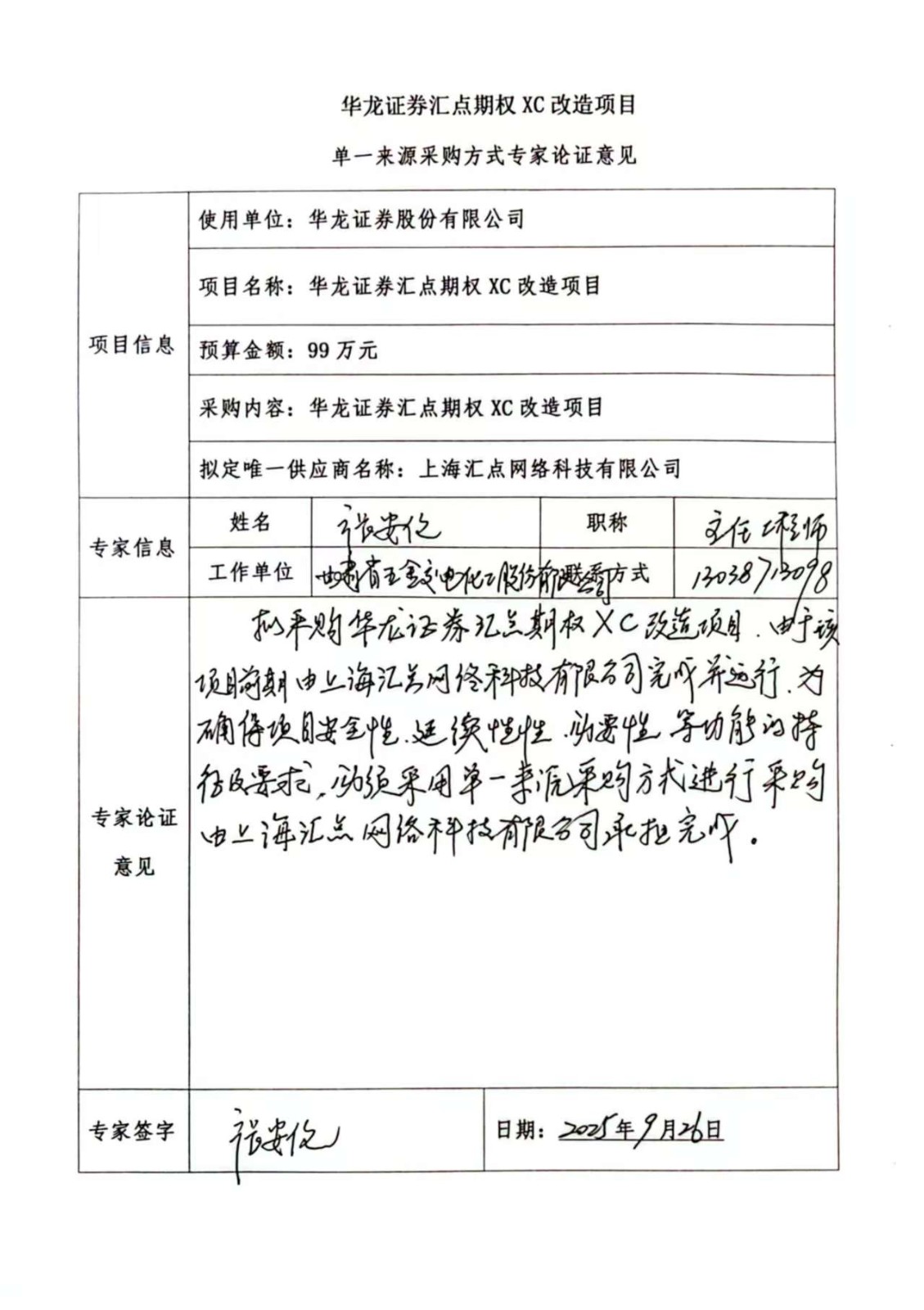 (二)項(xiàng)目名稱:華龍證券匯點(diǎn)期權(quán)XC改造項(xiàng)目